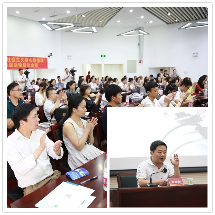 下午首先进行了一场报告会“中国传统文化的历史意蕴及其时代价值”,主讲人是安徽大学校团委副书记高贵和老师,高老师由习总书记对我国传统文化的赞扬引入报告,他介绍了中国传统文化的价值精髓,期望同学们知廉懂礼、勿忘根本,要重视对我国传统文化的学习和传承。高老师以丰富的专业知识结合中国传统文化,带我们一起阐述了自省的修身之道、和谐的齐家之略、崇高的人生理想、豁达的精神境界、坚定的道义但当。报告会在“上善若水,和而不同”八个字和热烈的掌声中结束,大家获益匪浅。安徽师范大学图书馆程文海书记主持了报告会。