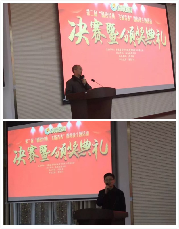 首先进行的是第二届“诵读经典 飞扬青春”微阅读主题活动,由安徽省高校图工委主办、“e博在线”承办?;疃诩涔彩盏饺?2所高校参赛作品5800多份,按照比赛规则,产生竞赛优秀奖60名,三等奖20名,11组选手进入决赛。