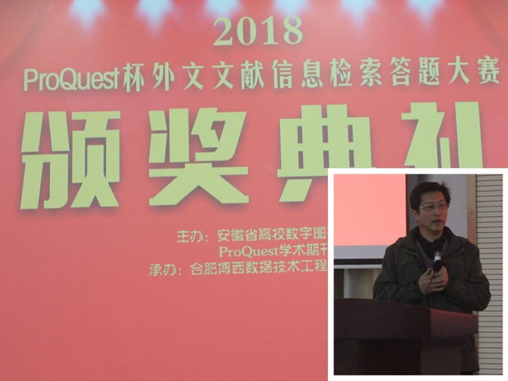 颁奖由安徽医科大学图书馆副馆长周国正主持。ProQuest中国区总裁朱江先生参加活动并给一等奖选手颁奖。