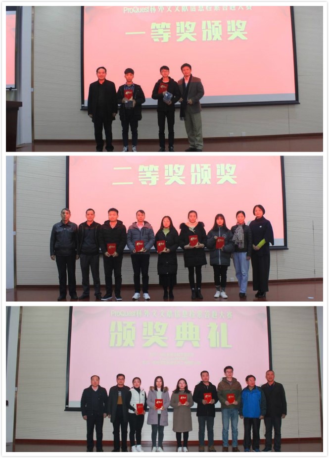 2018“ProQuest杯”外文文献信息检索答题大赛颁奖典礼随后举行。比赛由安徽省高校数字图书馆、ProQuest主办,合肥博西数据技术工程有限公司承办?;疃诩涔彩盏饺?6所高校参赛作品4600多份,按照比赛规则,产生竞赛一等奖3名,二等奖10名,三等奖20名,优秀奖100名。
