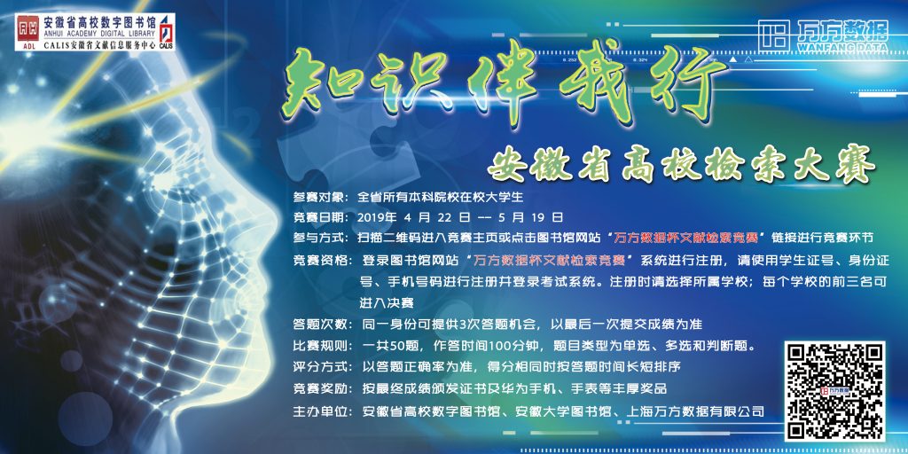 为了提高大学生的文献信息资源的检索技能和检索技巧,万方数据公司决定在安徽省本科院校范围内举办文献检索知识竞赛,现将竞赛规则及相关事宜通知如下: