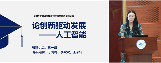 我校丁菁梅老师和卢嘉炜同学分在第一组,组长卢嘉炜登台汇报由丁老师指导完成的课题《论创新驱动发展——人工智能》,展示了全面而又严谨的检索过程,并就人工智能的影响、存在的问题及发展趋势做出了分析,最终获得创新课题检索大赛的一等奖。我校马斌斌同学参与的第五组也做了题为《创新驱动之3D打印技术》的报告,获得二等奖。赛后,来自安徽理工大学的评委老师程少武对大赛进行了总结。