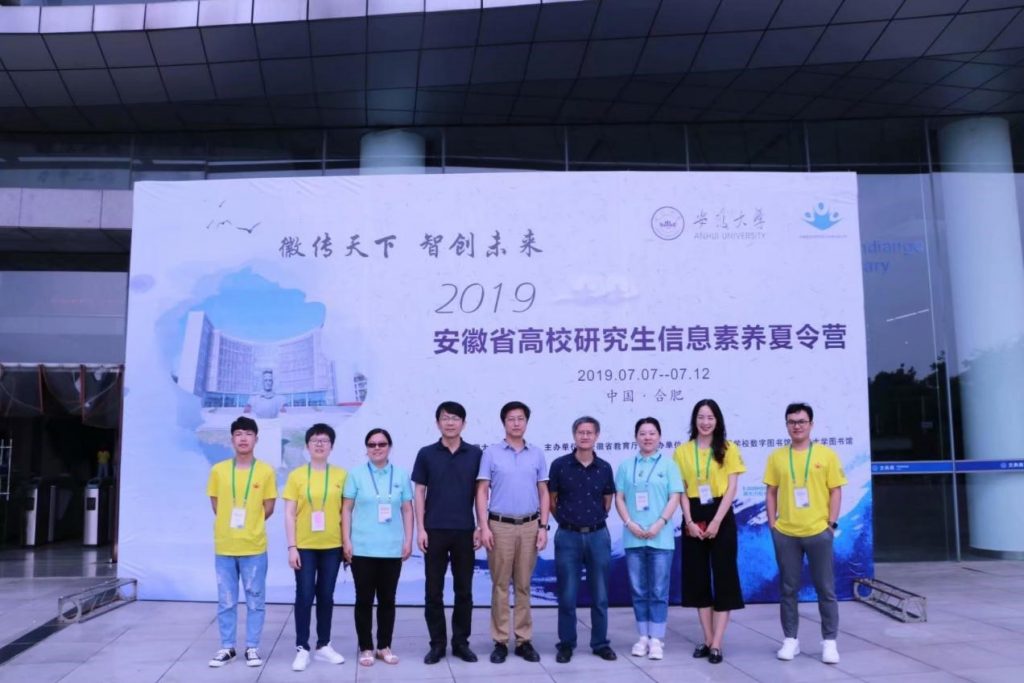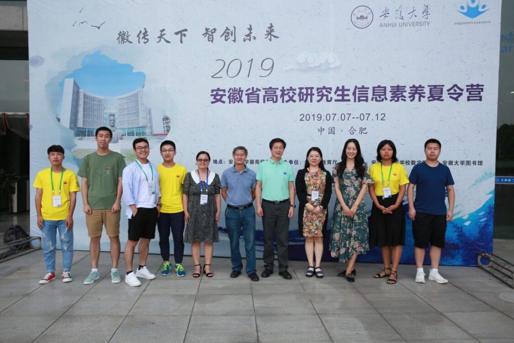 接天莲叶无穷碧,映日荷花别样红。初夏七月,安徽大学磬苑校区图书馆内座无虚席。2019年7月7日到11日来自安徽省内25所高校的260多名营员齐聚翡翠湖畔,参加第六届高校研究生信息素养夏令营。我校共有六名同学参与此次活动。他们与各兄弟院校的营员积极讨论,热情主动,相互交流,彼此促进,共享知识。在为期五天的夏令营时间里,队员们不仅收获了证书和荣誉,更赢得了知识和友谊。