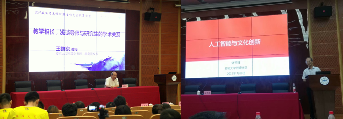 首日的开幕式后安徽大学党委副书记、常务副校长王群京教授给大家带来了专题讲座,主题为“教学相长,浅谈导师与研究生的关系”。王群京教授以自身为例,分别从研究生与导师的角度阐释了相互的关系,双方应该如何去做以创建一个良好的师生关系。他还提到了,科学是有前途的,我们要努力、要奋斗、要有家国情怀,踏实地做科研。除此之外,俞本立教授与周礼刚教授也给我们带来了主题为“学习与创新”和“漫漫人生路,科研伴你行”的报告。