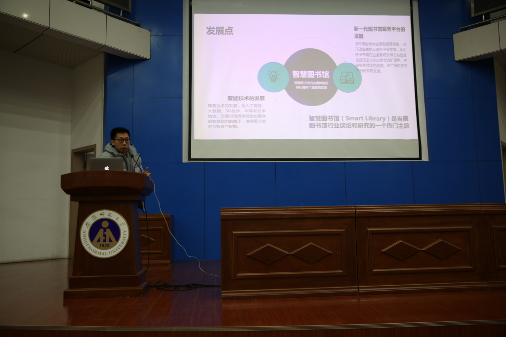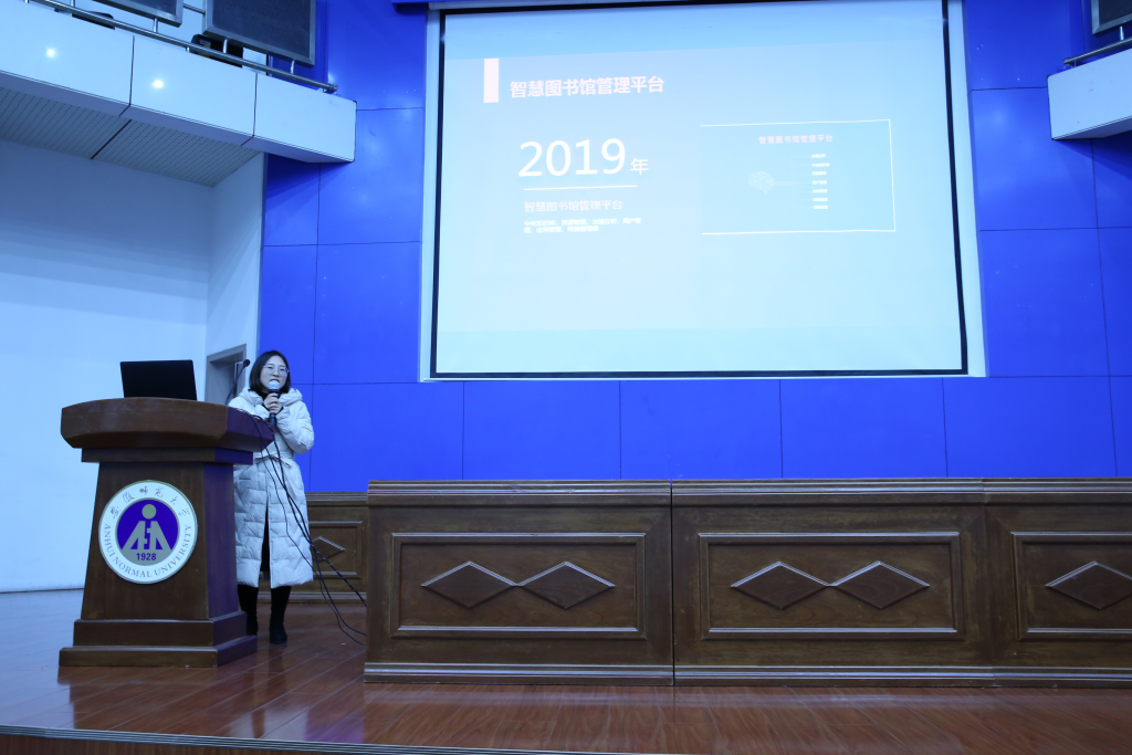 ? ? ? 首先安徽师范大学图书馆馆长助理章丽作为东道主表示热烈欢迎各位同仁远道而来欢聚一堂,章丽老师分享了安徽师范大学图书馆的建设概述。坚持问题导向,创新知识服务,着重提出要推进图书馆向多样化服务模式相融合的智慧图书馆转型发展,与超星集团合作开发了智慧图书馆微服务平台、电子资源管理、智慧门户、安师大微服务与微应用集群等应用???,并且将不断深耕合作,助力图书馆的智慧化。