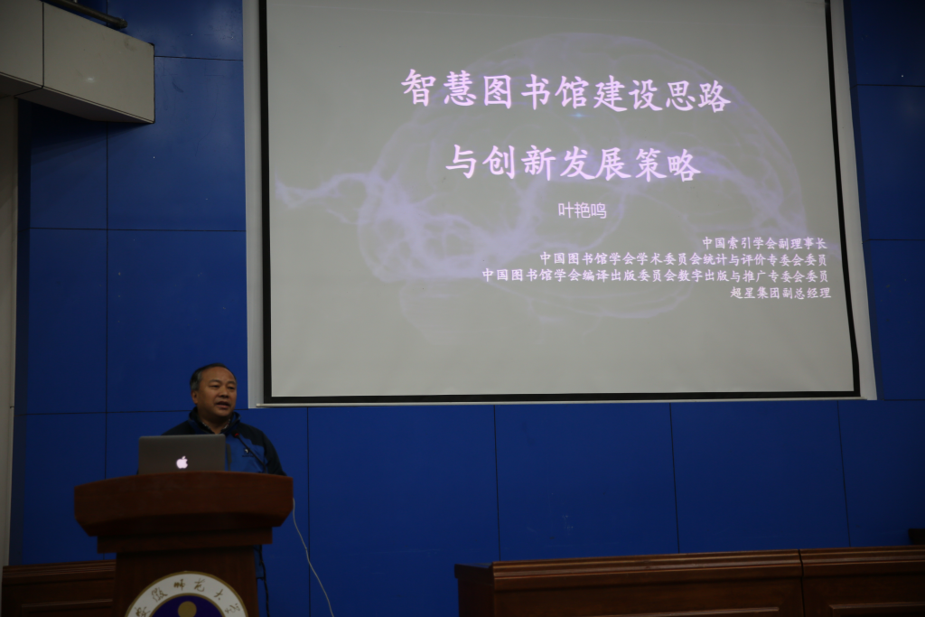 中国索引协会副理事长叶艳鸣做了“智慧图书馆建设思路与创新发展策略”的汇报。报告提出了图书馆的发展目标以及现有图书馆管理系统的困境。
