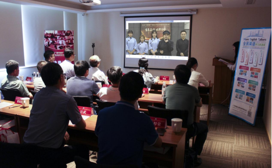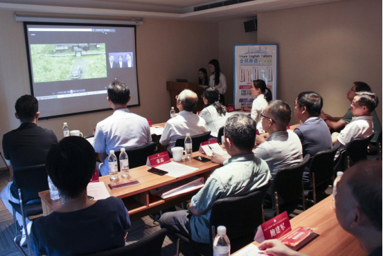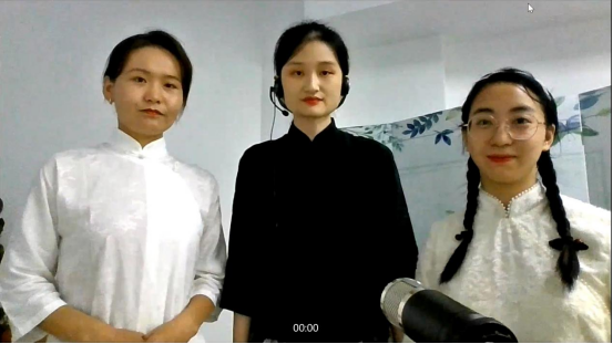 因疫情防控需要,总决赛采用“云竞赛”的形式开展,现场的评委及嘉宾通过屏幕观看各队伍比赛,每组队伍先进行简单的英文介绍,再开始英文实时配音环节。
