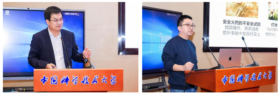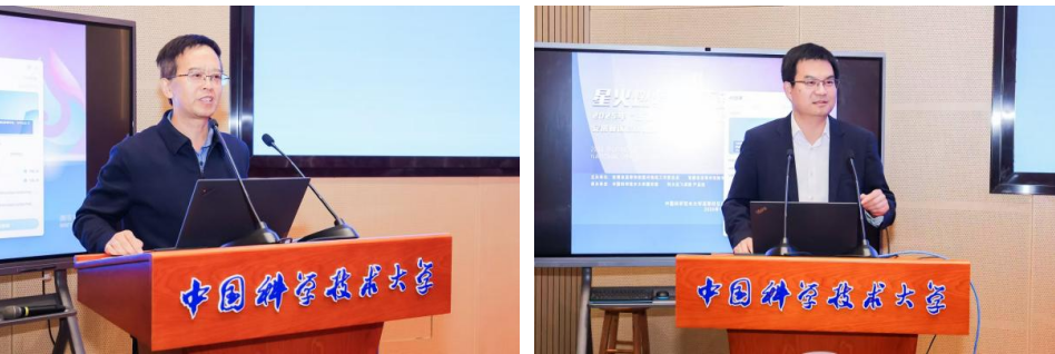 随后,在安徽省图书馆学会秘书长、安徽省图书馆副馆长王建涛的主持下,会议进入专题报告环节。科大讯飞高教事业部总经理陈红斌作《解放生产力,释放想象力——人工智能助力高校教育数字化转型与高质量发展》报告,介绍了通用人工智能技术及讯飞星火大模型的前沿进展,并详细阐述了大模型在助力高??蒲蟹妒奖涓?、赋能教学全场景改造、助力大学生创新创业等方向的实践成果。中国科学技术大学精准智能化学全国重点实验室特任教授、博导陈林江作《科研智能体驱动的机器化学家》报告,详细介绍了由中国科学技术大学机器化学家团队研发的新一代科研机器人系统,展示了其在化学科研中以多智能体驱动的高度自主探索能力。