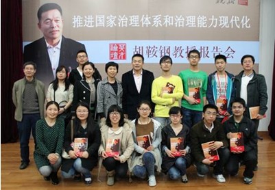 ?两个小时的报告会,全场座无虚席,许多同学站着聆听了精彩的报告?;ザ方谥?,胡教授还认真回答了同学们提出的问题。报告结束后,胡鞍钢教授与图书馆的学生志愿者合影留念。