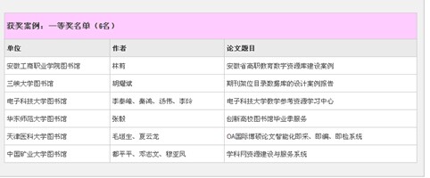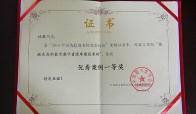 在上周刚刚闭幕的2014年“高校图书馆发展论坛”会议上,安徽工商职业学院图书馆报送的《安徽省高职教育数字资源库建设案例》在学术论文及应用案例征集和评审活动中荣获一等奖排名第一的佳绩。