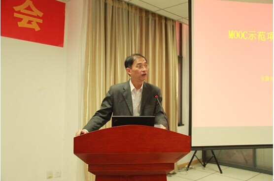 安徽省教育厅高教处副处长梁祥君介绍了安徽省MOOC示范项目建设背景,以及安徽省落实教育信息化采取的措施和推进的步骤,他指出安徽省高校数字图书馆二期建设的重点为安徽省高等教育网络课程学习中心,科大前期已经做了大量工作,希望此次会议在课程建设及管理推广等方面深入交流探讨,为教育厅和科大下一步具体落实课程建设献策献力。