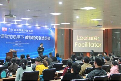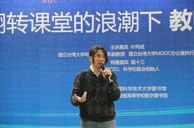 本次会议邀请到了国立台湾大学电机工程学系副教授、MOOC办公室执行长叶丙成做《MOOC、翻转课堂的浪潮下,教师如何创造价值》的主题报告。参加会议的有来自全省41所本专科院校(包括中国科大)、高职高专院校的170多位授课老师,以及省内一些高校的教务处负责人。本次活动由我校图书馆和果壳网合办,图书馆馆长助理陈超主持了会议。